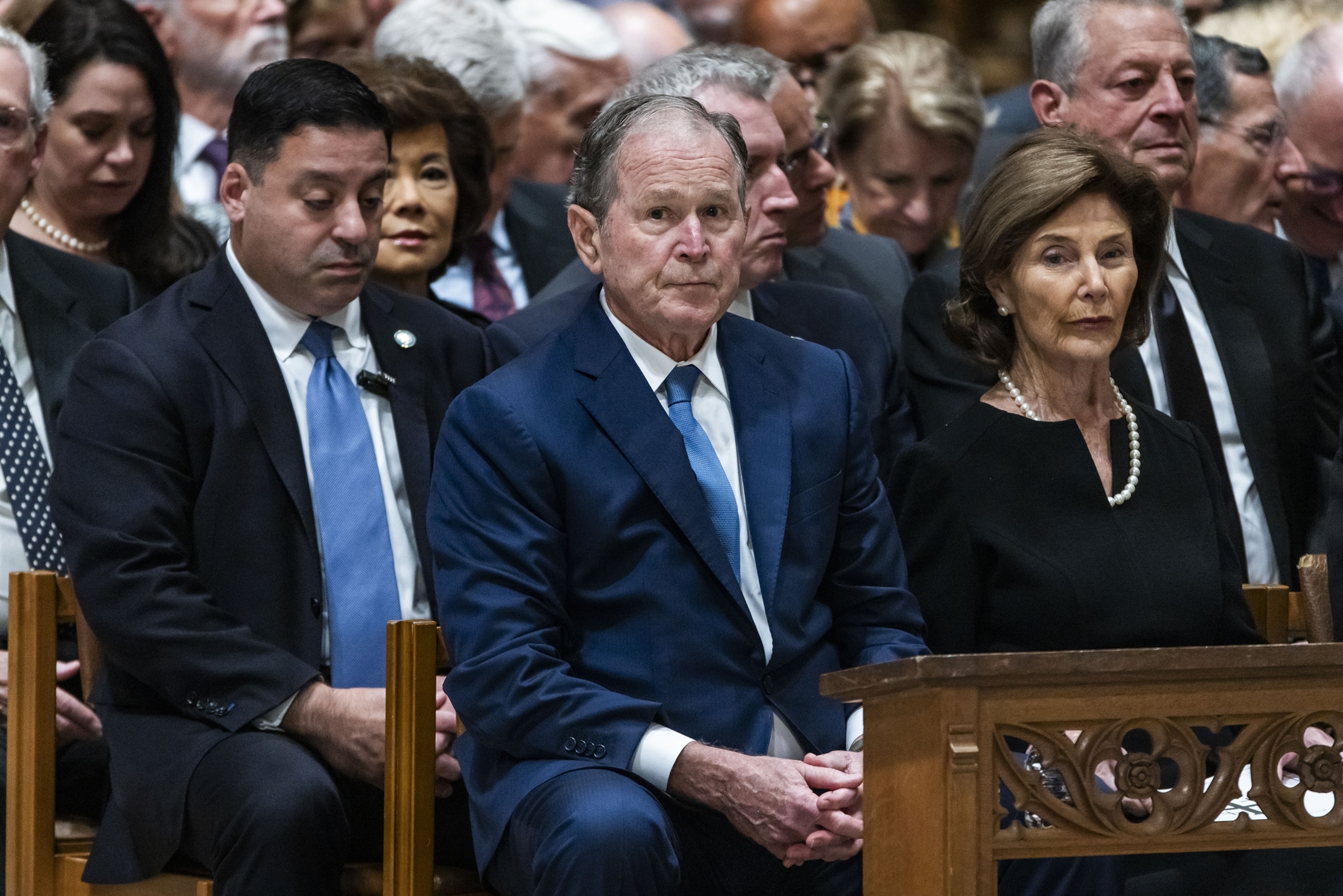 Former President George W. Bush and former First Woman Laura Bush attend the funeral for former Vice President Dick Cheney at on the Nationwide Cathedral in Washington, November 20, 2025.