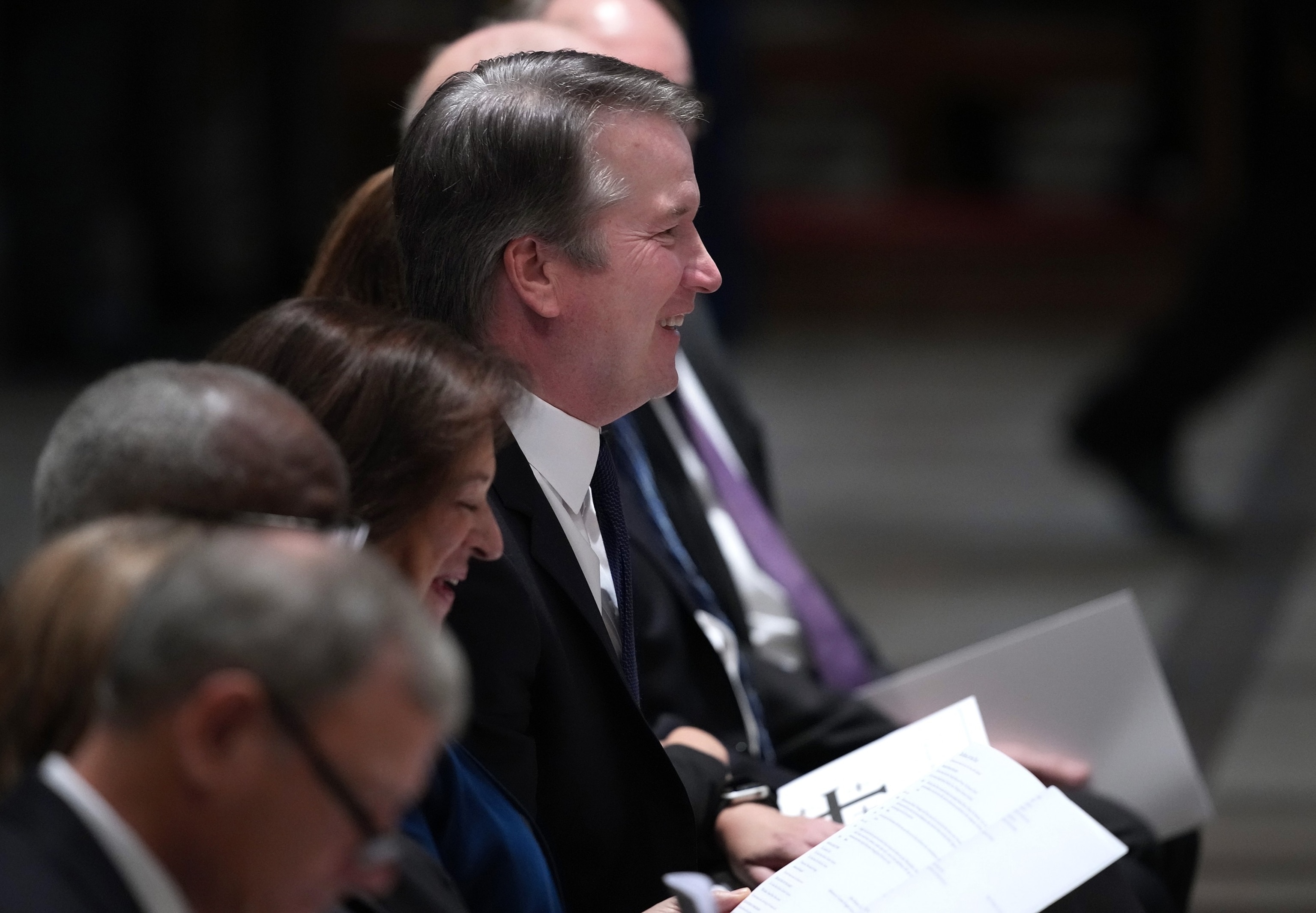 Supreme Court docket Justice Brett Kavanaugh attends the funeral service of former Vice President Dick Cheney on the Nationwide Cathedral, November 20, 2025 in Washington.