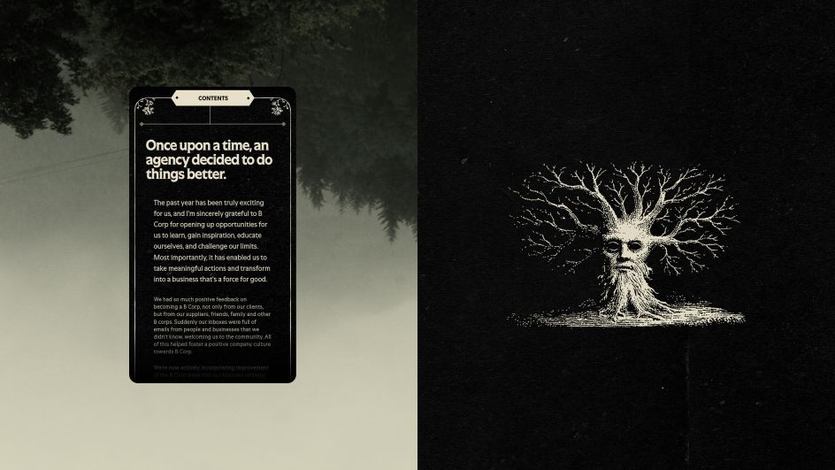 It is a provocative selection. At a second when greenwashing prosecutions are on the rise and purpose-led claims face unprecedented scrutiny, intentionally framing your impression work as folklore might learn as flippant. However One thing Acquainted’s strategy does one thing cleverer: it acknowledges the scepticism whereas demonstrating the rigour that sits beneath it. The report covers all 5 B Corp pillars (Governance, Staff, Group, Atmosphere and Clients), however wraps the information in a story about metamorphosis and religion.