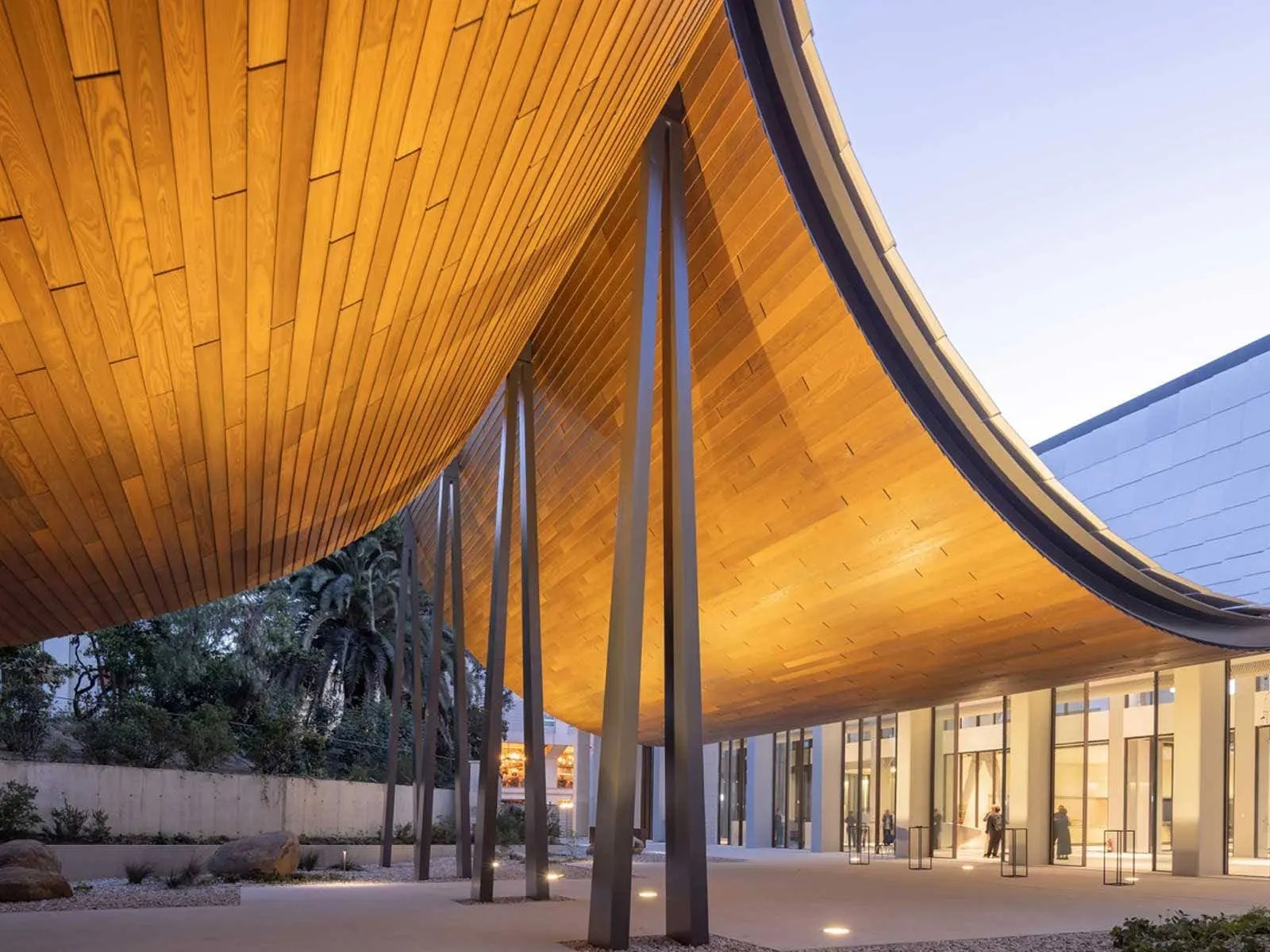 The constructing’s design creates a seamless transition between structure and nature, notably via the incorporation of a component often known as Engawa, or the Japanese cover, which is adorned with tons of of Portuguese ceramic tiles. Kengo Kuma collaborated with panorama architect Vladimir Djurovic to make sure a harmonious integration of structure and nature within the design.